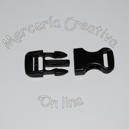 Cierre de plástico resistente de color negro, para mochila o cinturon. Tamaño de cinta 20mm.