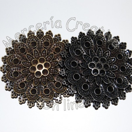 Hebilla decorativa para bolso o cinturón. Tamaño 95mm de diámetro. Realizada en plástico imitación metal.