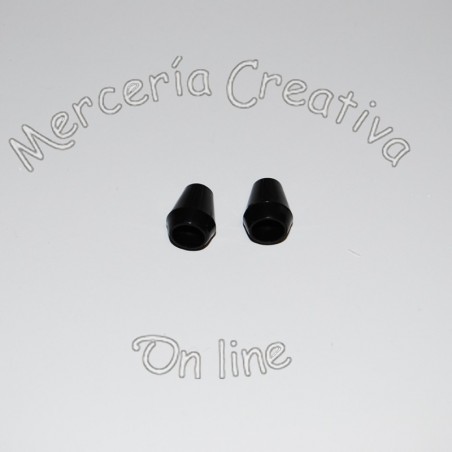 Topes para cuerda, ideal bolsos o mochilas. Material plástico disponible en blanco o negro. Medida del hueco interior 4mm aprox.