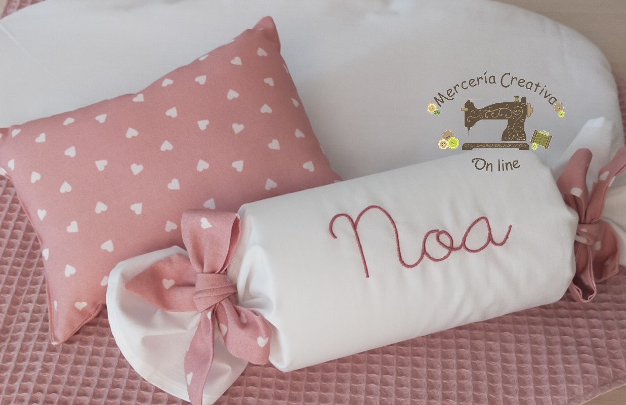 Le he añadido al moisés un colchón hecho a medida en tela y guata. También lleva la almohada con la tela a juego y una manta en tela de waffle que va acolchada con una capa de guata. Se puede añadir, opcionalmente, un caramelo antivuelco, en el que se puede bordar el nombre de su muñeca o reborn.